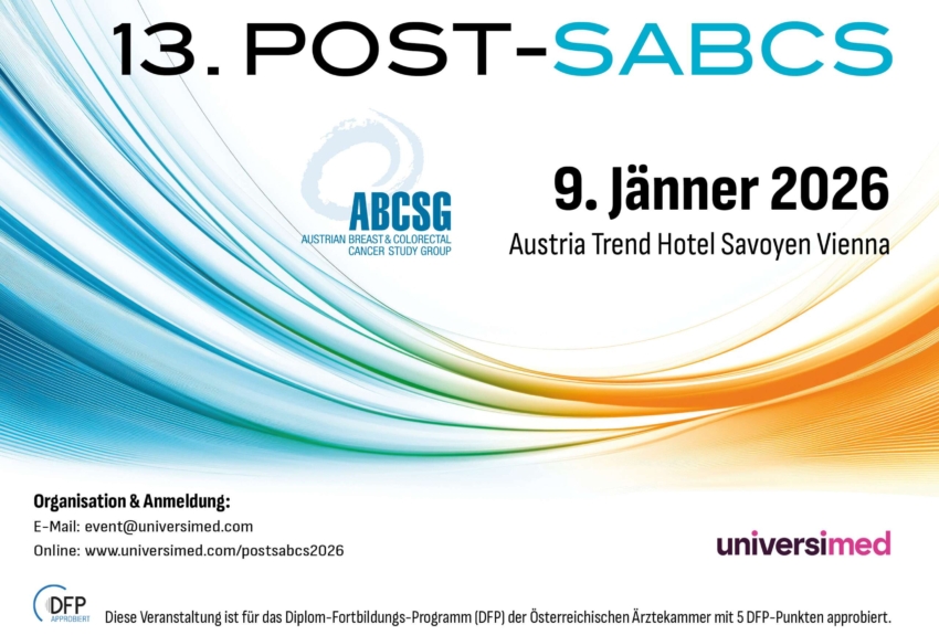 News Aktuelle Artikel auf abcsg.at: ABCSG 67N / CAROLEEN Studie: Erste Patientin eingeschlossen science news ESMO Congress 2025 Neue Erkenntnisse vom Mamma-Diskurs: ABCSG in der „krebs:hilfe!“ 05/25 zur Übersicht Veranstaltungen 07.11.2025 – 08.11.2025: 34. ABCSG Jahrestagung 2025 20.11.2025: EXPERTS ON TOUR® 09.01.2026: 13. POST-SABCS zur Übersicht Studien Rekrutierende Studien Studien in Behandlungsphase und Follow-up Translationale Studien und Projekte zur Übersicht Veröffentlichungen Wissenschaftliche Publikationen ABCSG – Clinical Opinions Jahresberichte der ABCSG Presse zur Übersicht ABCSG 50/BRCA-P BRCA-P Documents [Members Area] ABCSG Studienzentren zur Gesamtübersicht Members Bereich Login Trialdataport Zugang nur mit Passwort Teilen auf zur Online Anmeldung 34. Jahrestagung der ABCSG