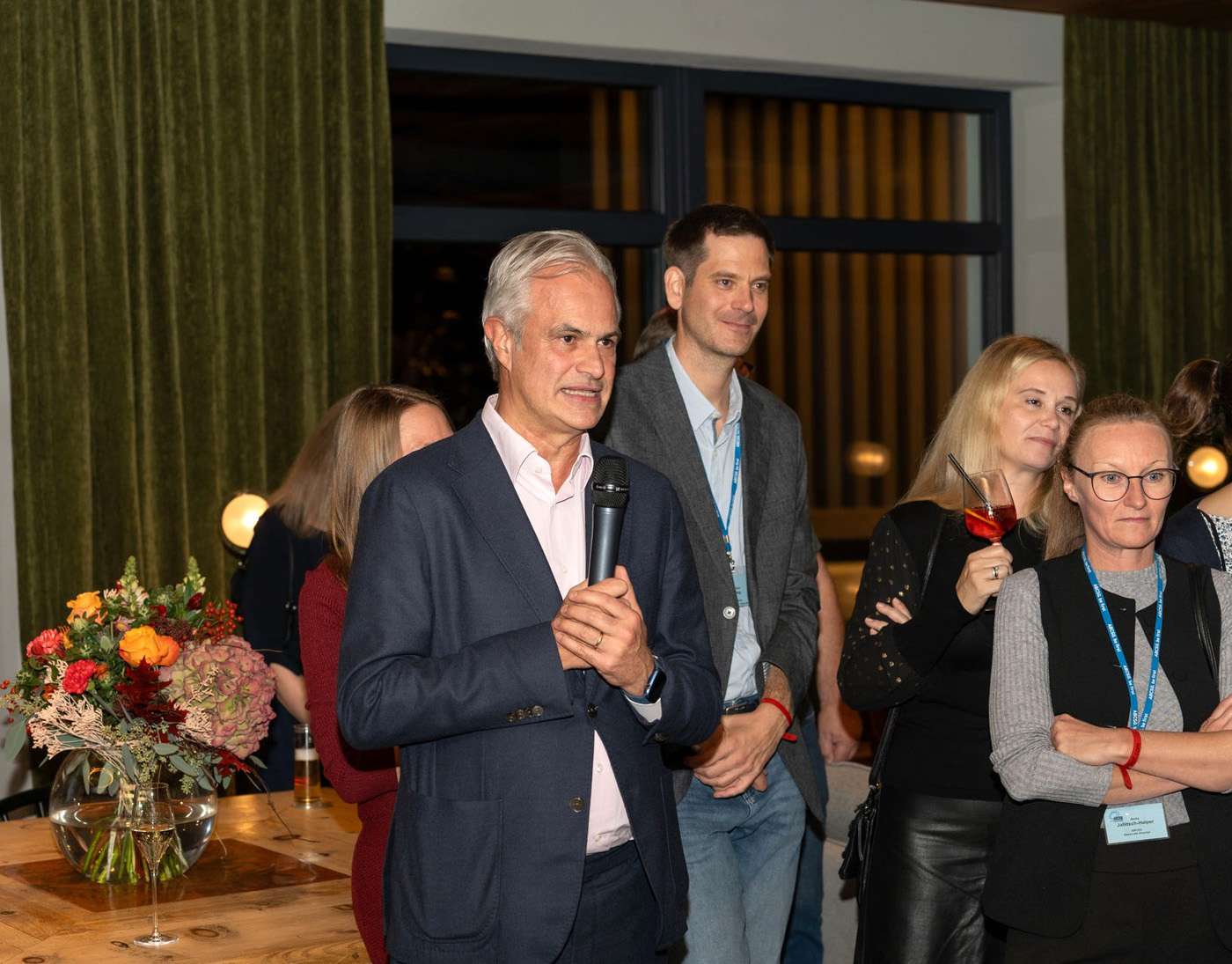 Ein besonderes Highlight des Abends war ein Überraschungsvideo mit Grußbotschaften langjähriger Wegbegleiterinnen und Wegbegleiter. Ergänzt wurde die Ehrung durch Ansprachen von ABCSG-Vizepräsident Univ.-Prof. Dr. Christian Singer sowie Managing Director Mag. Hannes Fohler, der Prof. Gnant symbolisch ausgewählte 20-jährige Weine überreichte.